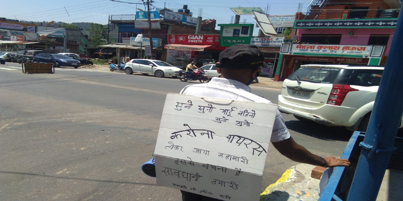 2 जून। कोरोना वायरस महामारी से बचाव व सुरक्षा के बारे में आम लोगों को जागरूक करने के लिए सूचना एवं जन सम्पर्क विभाग संबद्ध अमर ज्योति सांस्कृतिक कला मंच के कलाकार कमल राज ने घुमारवीं में लोगों को महामारी से बचने का जागरूकता संदेश दिया। कलाकार ने घुमारवीं के दकड़ी चैक, गांधी चैक, बस स्टैण्ड व अस्पताल के आस-पास कोरोना महामारी से बचाव के विभिन्न उपायों जिसमें सही ढंग से मास्क पहनना, बार-बार साबुन से हाथ धोना, उचित सामाजिक दूरी बनाकर रखना, सैनेटाईजर का उपयोग तथा सरकार द्वारा जारी दिशा निर्देशों की पूर्ण अनुपालना करने बारे जागरूक किया।