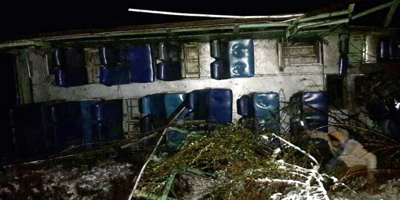 स्थानीय लोगों से मिली जानकारी के अनुसार यह हादसा कोठी कैंची में बस को मोड़ते समय पेश आया। सड़क में बर्फ होने के कारण बस मोड़ पर स्किड कर गयी और चालक के संतुलन बिगड़ने पर बस पलट गई।