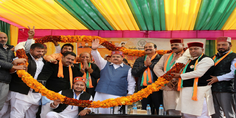 नड्डा ने कहा कि हिमाचल प्रदेश की जनता ने तय कर लिया है कि इस बार हिमाचल में राज नहीं, रिवाज बदलेंगे। हमने उत्तराखंड और उत्तर प्रदेश में भी रिवाज बदला है। असम, मणिपुर, गोवा में भी हमारी सरकार फिर से बनी है। हिमाचल में भी रिवाज बदलेंगे और आदरणीय प्रधानमंत्री  नरेन्द्र मोदी जी के नेतृत्व में डबल इंजन वाली भारतीय जनता पार्टी की सरकार फिर से भारी बहुमत से बनेगी। हमारे प्रधानमंत्री जी ने देश में रिपोर्ट कार्ड की संस्कृति विकसित की। पहले जब सड़कें बननी होती थीं तो चुनाव की पूर्व संध्या पर कांग्रेस की सरकार चूना लगा देती थी मानो कि वहां सड़क बनने वाला है और जैसे ही चुनाव समाप्त होता था और बरसात आती थी तो चूना धुल जाता था और इस तरह जनता को चूना लग जाता था। वही प्रदेश है, वही देश है लेकिन सही नेतृत्व आया तो सही मायनों में गरीबों की चिंता शुरू हुई।