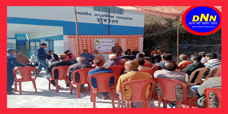 किसानों की इन बातों को ध्यान में रखते हुए उप निदेशक कृषि ने उपस्थित किसानों को जानकारी दी कि फसलों को सही समय पर और सही मात्रा में पानी उपलब्ध करवाने से पैदावार बहुत अधिक मात्रा में बढ़ जाती है यदि किसान गेहूं की फसल लगाने से पहले खेतों की सिंचाई करते और 15 से 30 अक्टूबर के बीच में बिजाई कर देते तो भी जल शक्ति विभाग द्वारा निर्मित इस योजना का लाभ उठा सकते थे। 15 नवंबर के बाद गेहूं की बिजाई करने से प्रतिदिन के हिसाब से पैदावार में कमी आती है। इसके बाद यदि बारिश न हो तो गेहूं की फसल में 5 बार सिंचाई करनी पड़ती है और यदि समय पर सिंचाई न करें तो फसल की पैदावार में बहुत कमी आ जाती है।उन्होंने कहा कि खेतों में सिंचाई जल के सही मात्रा में वितरण के लिए कृषि विभाग द्वारा किसानों को 80 % अनुदान दिया जाता है और कहा कि इस वर्ष कृषि विभाग द्वारा जिला चम्बा के किसानों को 1535 किवंटल गेहूं की सुधरी किस्मों के बीज उपलब्ध करवाए हैं और यदि किसान सिंचाई जल और खाद का सही मात्रा में उपयोग करें तो गेहूं की इन किस्मों से एक बीघा से 4 किवंटल तक गेहूं की पैदावार ले सकते है और यदि सुंगल के किसान बेमौसमी सब्जियों की खेती करेंगे तो घर बैठे खेती एक रोजगार का साधन बन सकती है । कृषि विभाग द्वारा किसानों को सभी प्रकार की सब्जियों के बीज 50 % अनुदान पर उपलब्ध करवाए जाते है बंदरों की समस्या से छुटकारा पाने के लिए किसान कृषि विभाग के माध्यम से सोलर बाड़ लगाने के लिए 80 % अनुदान प्राप्त कर सकते हैं।इस किसान जागरूकता शिविर में उपस्थित डॉ ईश्वर ठाकुर ने किसानों को कृषि विभाग द्वारा चलाई जा रही योजनाओं की जानकारी दी । उन्होंने किसानों को मुख्यमंत्री खेतिहर मजदूर योजना की जानकारी दी और कहा कि यदि खेती करते समय किसी किसान की दुर्घटना से मृत्यु हो जाये तो 3 लाख रुपये तक मुआवजा मिलता है। और किसानों को किसान क्रेडिट कार्ड बनाने के लिए भी प्रोत्साहित किया।उप मंडलीय भू संरक्षण अधिकारी डॉ योगिंदर पाल व कृषि विकास अधिकारी डॉ भानु प्रताप सिंह ने खेती में पानी के महत्व की जानकारी दी और कृषि विभाग द्वारा चलाई जा रही सिंचाई योजनाओं की जानकारी दी।किसान जागरूकता शिविर के अंत में उद्यान विभाग से डॉ तृप्त बलोरिया के उद्यान विभाग की योजनाओं की जानकारी दी।स्थानीय ग्राम पंचायत प्रधान , उपप्रधान, कृषि विभाग से डॉ अरविंद चहल के अतिरिक्त कृषि विभाग के अन्य अधिकारी भी उपस्थित रहे।