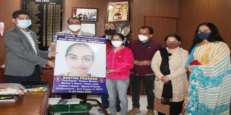 20 नवंबर । उपायुक्त राघव शर्मा ने नीट परीक्षा में ऊना जिला की राज्य में दूसरा रैंक हासिल करने पर आस्था पराशर को 21 हज़ार रूपये का चैक देकर सम्मानित किया तथा माता-पिता सहित इस उपलब्धि के लिए बधाई दी। इस अवसर पर उन्होंने कहा कि आस्था अन्य शिक्षार्थियों के लिए एक प्रेरणा ही नहीं, बल्कि बेटियों के प्रति समाज की मानसिकता को भी बदलने का एक प्रेरक बनी है। उन्होंने कहा कि बेटे की शिक्षा केवल बेटे तक ही सीमित रहती है जबकि एक बेटी के शिक्षित होने का मतलब पूरे परिवार का शिक्षित होना है।