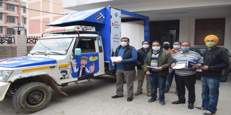 22 नवंबर। जि़ला ऊना में चलाए गए मतदाता जागरुकता अभियान के अन्तर्गत सोमवार को मतदान जागरुकता मोबाइल वैन ने ऊना विधानसभा क्षेत्र की विभिन्न ग्राम पंचायतों में जाकर मतदाताओं को मतदान के महत्व बारे जानकारी दी तथा लोगों से आग्रह किया कि वे निर्धारित समयसीमा में अपने पंचायत कार्यालय में जाकर वोटर लिस्ट में अपने नाम के दर्ज होने की पुष्टि कर लें तथा किसी प्रकार की अशुद्धि पाए जाने पर आवेदन करें। मोबाइल वैन को निर्वाचन रजिस्ट्रीकरण अधिकारी एवं एसडीएम ऊना डॉ. सुरेश जसवाल ने रवाना किया।