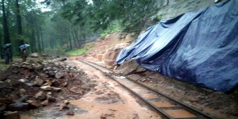 प्रदेश में लगातार हो रही बारिश के कारण कई जगह भूस्खलन होने से कालका शिमला रेल मार्ग पर कोई ट्रेन नहीं चली। सुबह यहां पर कालका से चली पहली ट्रेन केवल धर्मपुर रेलवे स्टेशन तक ही पहुंच पाई। उससे आगे भूस्खलन होने के चलते ट्रेन को यहीं पर रोक दिया गया और इसके बाद इस मार्ग पर चलने वाली सभी ट्रेनों को रद कर दिया गया। आप को पता दे कि इस रेल मार्ग पर कई स्थानों पर पेड़ गिरे है और मलबा गिरा है। जिसे रेलवे विभाग के कर्मचारी साफ करने में जुटे हुए है। मार्ग के पूरी तरह से साफ होने के बाद सोमवार को यहां पर यातायात सामान्य होने की संभावना है।