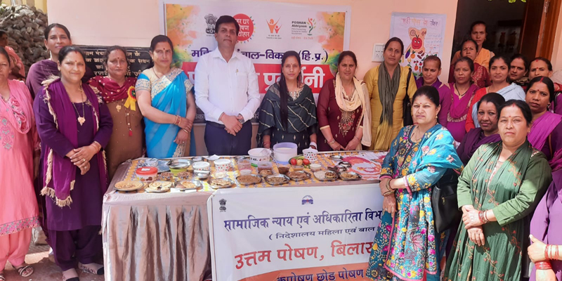 27 मार्च बाल विकास परियोजना सदर बिलासपुर द्वारा खण्ड स्तरीय पोषण पखवाड़ा का आयोजन ग्राम पंचायत घर नमहोल के प्रांगण में किया गया। कार्यक्रम की अध्यक्षता बाल विकास परियोजना अधिकारी सदर नरेंद्र कुमार ने की। इस अवसर पर उन्होंने कहा कि प्रदेश में 21 मार्च से 4 अप्रैल 2022 तक पोषण पखवाड़ा मनाया जा रहा है। पोषण अभियान समग्र रूप से पोषण संबंधी परिणामों में सुधार का प्रयास करता है। उन्होंने कहा कि अभियान के लक्ष्यों को प्राप्त करने के लिए व्यक्तिगत तौर पर और समुदायिक स्तर पर व्यवहार परिवर्तन लाना बहुत अहम है।