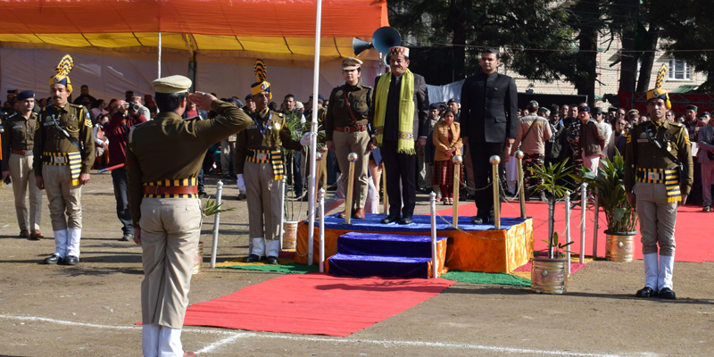 26 जनवरी। जिला स्तरीय गणतंत्र दिवस कुल्लू स्थित ढालपुर मैदान में  हर्षोल्लास के साथ मनाया गया।  समारोह की अध्यक्षता मुख्य संसदीय सचिव सुंदर सिंह ठाकुर ने की। सुंदर सिंह ठाकुर ने इस अवसर पर राष्ट्रीय ध्वज फहराया और भव्य परेड की सलामी ली। पुलिस,भारत तिब्बत  सीमा पुलिस बल,एस एस बी, गृह रक्षक, एनसीसी , स्काउट्स एंड गाइड्स  व एन एस एस की टुकडिय़ों ने शानदार मार्चपास्ट किया।  भव्य  परेड़ का नेतृत्व पुलिस उप- निरीक्षक इशांत सेन ने किया।