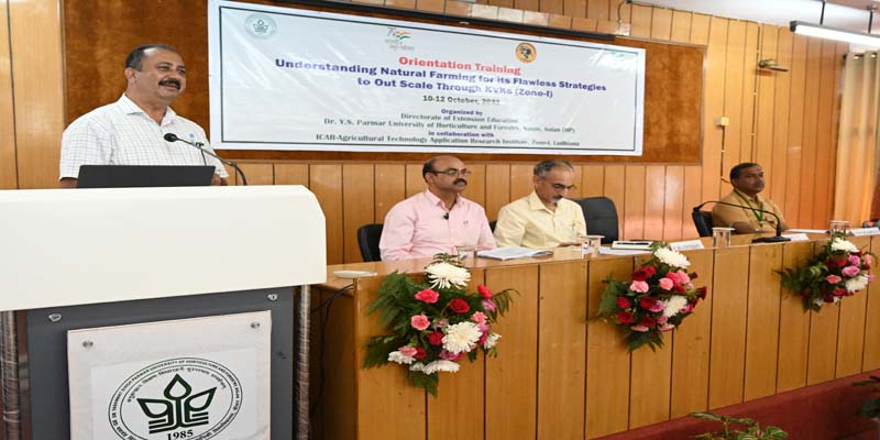 10 अक्टूबर विभिन्न जलवायु क्षेत्रों में प्राकृतिक खेती पर वैज्ञानिक मॉडल के विकास के लिए कृषि विज्ञान केंद्रों (केवीके) के ज़ोन 1 के वैज्ञानिकों का तीन दिवसीय अभिविन्यास प्रशिक्षण कार्यक्रम आज डॉ यशवंत सिंह परमार औदयानिकी एवं वानिकी विश्वविद्यालय, नौणी के विस्तार शिक्षा निदेशालय में शुरू हुआ। यह कार्यक्रम ‘अंडरस्टैंडिंग नेचुरल फार्मिंग फॉर इट्स फ्लॉलेस स्ट्रैटेजीज टू आउट स्केल टू केवीके (जोन- I)’ का आयोजन आईसीएआर-कृषि प्रौद्योगिकी अनुप्रयोग अनुसंधान संस्थान (ATARI), लुधियाना के सहयोग से किया जा रहा है।
