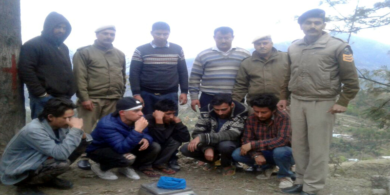सोलन पुलिस ने चरस के साथ 5 युवकों को गिरफ्तार किया है। गिरफ्तार किए गए युवक कुल्लू, सिरमौर व शिमला के है। पुलिस ने बीती रात एक सूचना के आधार पर नाके के दौरान यह गिरफ्तारी की है। एसपी मोहित चावला ने इसकी पुष्टि करते हुए बताया कि पुलिस ने नाके के दौरान रात करीब साढ़े 11 बजे एक कार को रोकर चैक किया। इस दौरान उसके सवार युवकों के पास से320 ग्राम चरस बरामद हुई। पुलिस ने सभी के खिलाफ मामला दर्ज करके उन्हें गिरफ्तार किया है। उन्होंने कहा कि नशीले पदार्थां की तस्कार के खिलाफ पुलिस की मुहिम जारी रहेगी।