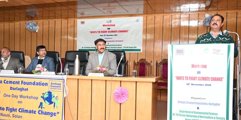 30 दिसंबर। डॉ. यशवंत सिंह परमार औद्यानिकी एवं वानिकी विश्वविद्यालय, नौणी के पर्यावरण विज्ञान विभाग द्वारा अंबुजा सीमेंट फाउंडेशन, दाड़लाघाट के सहयोग से क्षेत्रवार अनुकूलन जलवायु परिवर्तन से निपटने के लिए शमन रणनीतियाँ का पता लगाने के लिए ‘जलवायु परिवर्तन से लड़ने के तरीके’ विषय पर एक कार्यशाला का आयोजन किया। कार्यशाला में पर्यावरण विज्ञान, कृषि, बागवानी और पशुपालन क्षेत्रों के एक दर्जन से अधिक विशेषज्ञ, वाटरशेड डेवलपमेंट टीम के सदस्य, जलवायु-प्रूफिंग परियोजना के सदस्य और किसानों ने संयुक्त रूप से इन विभिन्न क्षेत्रों पर जलवायु परिवर्तन के कारणों और प्रभावों पर चर्चा और उपयुक्त अनुकूलन और शमन रणनीति बनाने के लिए एकत्रित हुए। कार्यशाला में 100 से अधिक प्रतिभागियों ने भाग लिया और जलवायु परिवर्तन के कारण होने वाली समस्याओं पर चर्चा की।