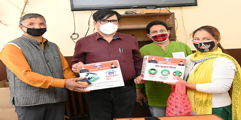 ठाकुर कुंजलाल दामोदरी देवी ठाकुर मेमोरियल चेरिटेबल ट्रस्ट ने जगतसुख में वितरित किए दो हजार सेनिटाईजर तथा मास्क