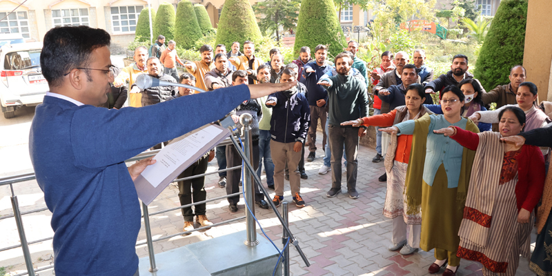 15 जनवरी। राष्ट्रीय सड़क सुरक्षा माह के तहत उपायुक्त डा निपुण जिंदल ने सोमवार को उपायुक्त कार्यालय परिसर में यातायात नियमों के पालन को लेकर कर्मचारियों एवं अधिकारियों को शपथ दिलाते हुए कहा कि कांगड़ा जिला में 14 फरवरी तक राष्ट्रीय सड़क सुरक्षा माह का आयोजन किया जा रहा है। इस दौरान लोगों को यातायात नियमों के बारे में जागरूक किया जाएगा।