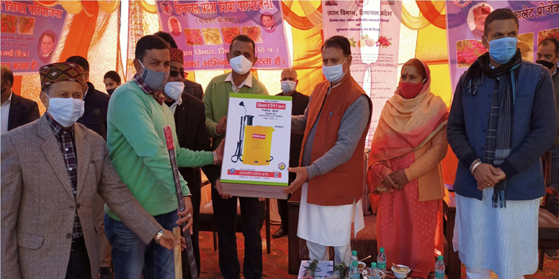 महेन्द्र सिंह ठाकुर ने कहा कि शिवा प्रोजैक्ट के साथ जुड़े किसानों को इन फलदार पौधों की देखरेख व कांटछांट के लिए कृषि औजार व उपकरण की किट भी वितरित की जा रही है, जिसमें कैंची, स्पे्र पंप, फावड़ा इत्यादि शामिल हैं। उन्होने कहा कि एचपी शिवा प्रोजैक्ट प्रदेश विशेषकर निचले हिमाचल प्रदेश के बेरोजगार युवाओं के लिए स्वरोजगार का अहम कदम साबित होगा। इससे न केवल उन्हे घर में ही रोजगार की सुविधा मिलेगी बल्कि उनकी आर्थिकी में भी व्यापक बदलाव लाने में अहम कड़ी साबित होगा। उन्होने वर्तमान पीढ़ी से पारंपरिक खेती-बाड़ी से बाहर निकलकर बागवानी की आधुनिक तकनीकों को अपनाने पर भी बल दिया तथा कहा कि बागवानी से जुडऩे वालों को सरकार हरसंभव मदद प्रदान कर रही है। साथ ही कहा कि आत्म निर्भर भारत निर्माण में भी यह प्रोजैक्ट एक अहम भूमिका अदा करेगा।