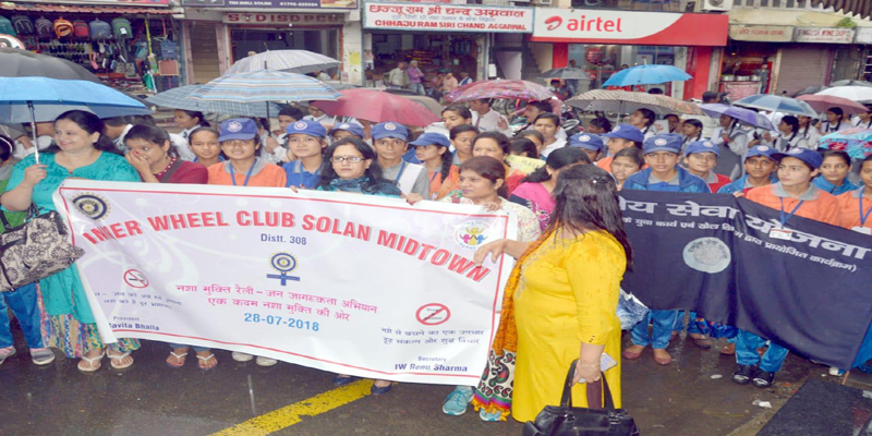 रोटरी क्लब सोलन मिडटाउन व इनरव्हील क्लब सोलन मिडटाउन के संयुक्त तत्वावधान में नशे के खिलाफ रैली का आयोजन किया गया। बारिश के बावजूद इस रैली में अच्छी संख्या में स्कूली बच्चों ने हिस्सा लिया। रोटरी क्लब सोलन मिडटाउन के प्रधान जितेन्द्र भल्ला ने बताया कि ये रैली विश्रामगृह से शुरू होकर पुराने डीसी आफिस चौक से होती हुई विश्रामगृह पर समाप्त हो गई। रैली को सोलन जि़ला के उपयुक्त विनोद कुमार ने हरि झंडी दिखाई गई। उपायुक्त ने बच्चों को नशे के खिलाफ जागरूक किया। इस अवसर पर अतिरिक्त उपायुक्त विवेक चंदेल भी उपस्थित थे।
