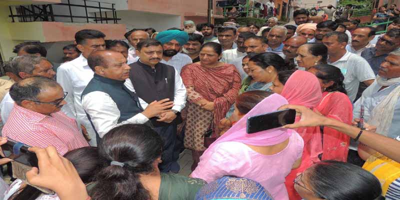 19 जुलाई। नेता प्रतिपक्ष जयराम ठाकुर ने आज सोलन ज़िला के परवानू, कसौली, के बाढ़ प्रभावित क्षेत्रों का दौरा किया और प्रभावित परिवारों से मिले। उन्हें राहत सामग्री दी और कहा कि बीजेपी उनके साथ मज़बूती से खड़े हैं। उन्होंने कहा कि इस आपदा में बहुत नुक़सान हुआ है। पूरे प्रदेश में हज़ारों लोगों के घर इस आपदा में बह गए। आज भी कई ऐसे गांव हैं जिसे लोगों ने भूस्खलन के डर से ख़ाली कर दिया हैं। सोलन ज़िले के कई क्षेत्रों में ऐसी ही स्थितियां बनी हैं। जहां बड़े स्तर पर तबाही हुई हैं। इस आपदा से लाखों लोग प्रभावित हुए हैं। इस नुक़सान की भरपाई में बहुत समय और पैसा लगेगा।