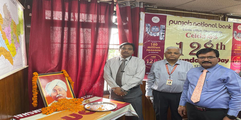 12 अप्रैल पंजाब नैशनल बैंक द्वारा देशभर में बैंक का 128वां स्थापना दिवस मनाया जा रहा है। इस अवसर पर धर्मशाला मण्डल के मण्डल प्रमुख अमरेन्द्र कुमार व सभी स्टाफ सदस्यों ने मण्डल कार्यालय के सभागार में पंजाब नैशनल बैंक के संस्थापक लाला लाजपत राय की प्रतिमा पर फूलमाला अर्पित करके उन्हें भावभीनी श्रद्धाजंलि दी।
