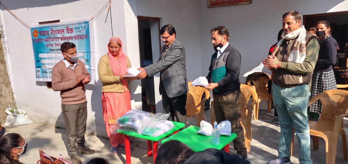 20 नवम्बर। पंजाब नैंशनल बैंक ग्रामीण स्वरोजगार प्रशिक्षण संस्थान द्वारा जिला कांगडा की बेरोज़गार महिलाओं को स्वरोजगार की ओर अग्रसर करने के लिए 10 दिन का पेपर कवर लिफाफा और फाइल बनाने का प्रशिक्षण गांव बडगवार ब्लॉक भवारना में शुरू करवाया गया, जिसका शुभारम्भ पंजाब नेशनल बैंक धर्मशाला के मुख्य आग्रणी जिला प्रबंधक कुलदीप कुमार कौशल द्वारा किया गया तथा निदेशक पीएनवबी आरसेटी महेन्द्र शर्मा एवं समस्त स्टाफ की उपस्थिति में प्रशिक्षणार्थियों को यूनिफार्म भी वितरित की गईं।