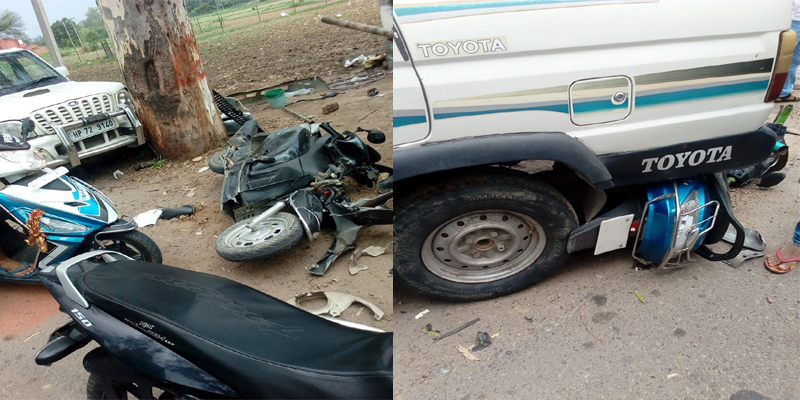 इसी बीच एक गाड़ी के पीछे खड़ी स्कूटी बुरी तरह से क्षतिग्रस्त हो गई। हादसे को देख स्थानीय लोगों ने घटनास्थल पर पहुंच कार सवारों को सुरक्षित बाहर निकाला और नजदीकी निजी अस्पताल में उपचार दिलाया। वहीं डीएसपी अंब मनोज जम्बाल ने बताया कि पुलिस के पास अभी तक दुर्घटना की सूचना नहीं मिली है। अगर शिकायत आती है तो पुलिस मामले की जांच करेगी।