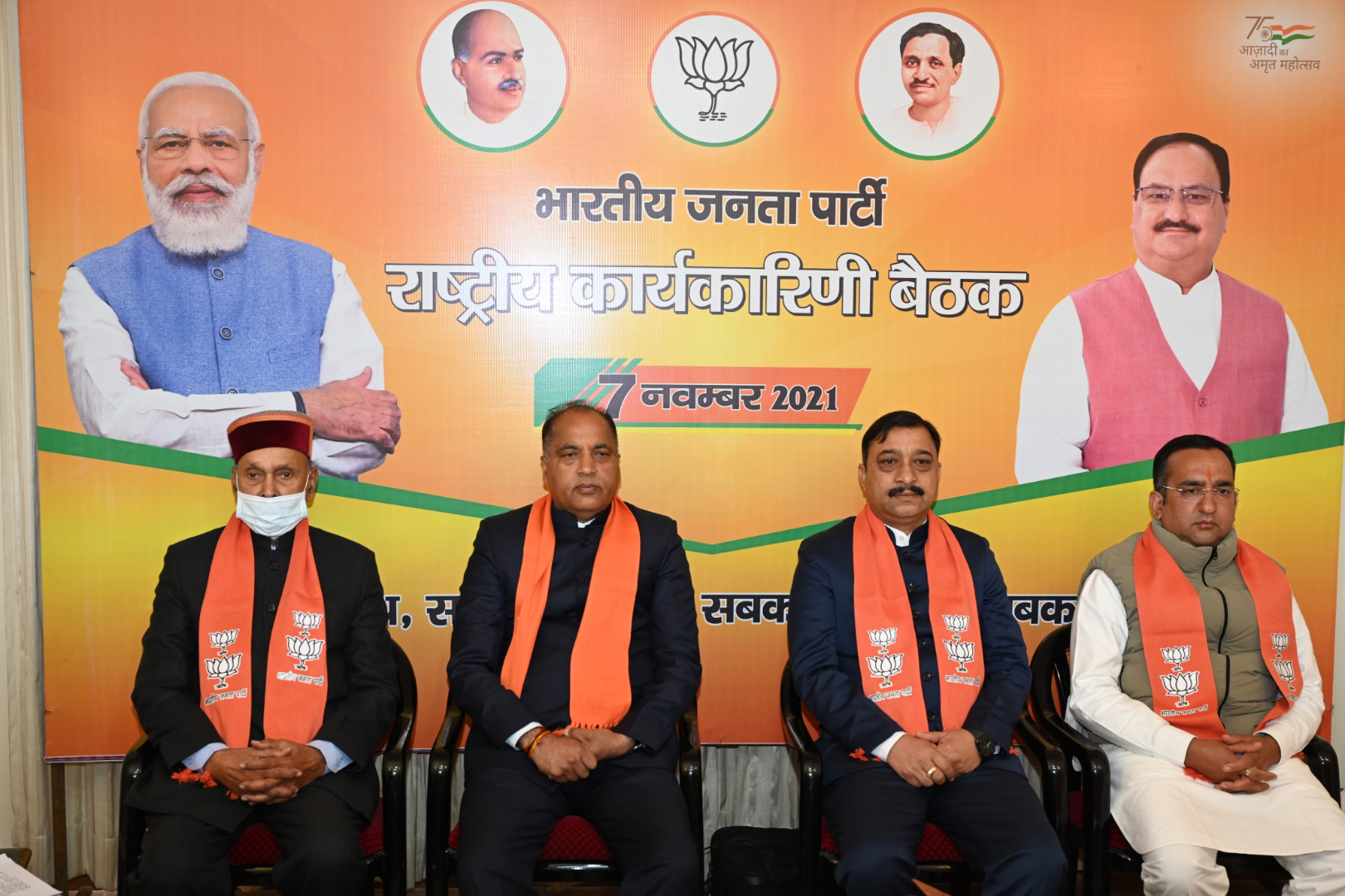 07 नवम्बर।भाजपा राष्ट्रीय कार्यकारिणी की बैठक में वर्चुअल माध्यम से मुख्यमंत्री जयराम ठाकुर, पूर्व मुख्यमंत्री प्रो प्रेम कुमार धूमल, प्रदेश अध्यक्ष सुरेश कश्यप एवं संगठन महामंत्री पवन राणा शिमला भाजपा मुख्यालय दीपकमल चक्कर से जुड़े।
