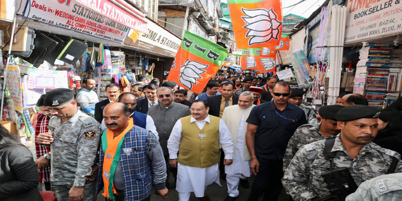 06 नम्बर भारतीय जनता पर्यत के राष्ट्रीय अध्यक्ष जगत प्रकाश नड्डा ने आज रविवार को शिमला के लोअर बाजार, द मॉल और सोलन के मेन बाजार में जनसंपर्क किया और लोगों से भाजपा के पक्ष में भारी मतदान करने की अपील की। राष्ट्रीय अध्यक्ष जी के जनसंपर्क अभियान ने जनता में जोश भर दिया। शिमला और सोलन में लोग उनकी एक झलक पाने के लिए आतुर दिखे। चारों ओर भारत माता की जय के नारे लग रहे थे। लोग कह रहे थे नया रिवाज बनायेंगे, फिर से भाजपा लायेंगे।