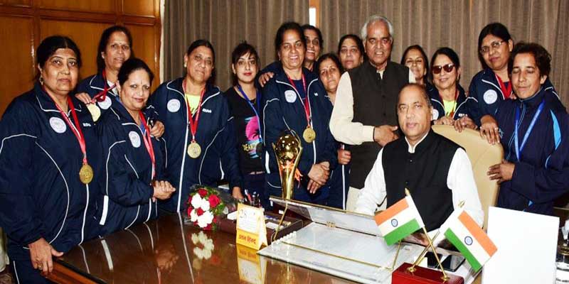 भारतीय मास्टर्स महिला हॉकी टीम के एक प्रतिनिधिमंडल ने आज यहां मुख्यमंत्री जय राम ठाकुर से मुलाकात की। पूर्व सांसद वीरेंद्र कश्यप ने प्रतिनिधिमंडल का नेतृत्व किया।