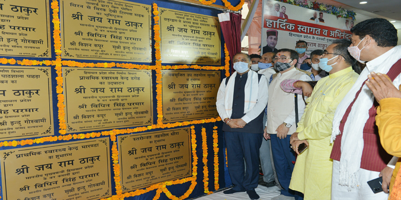 मुख्यमंत्री ने 6.35 करोड़ रुपये की अनुमानित लागत से ठाकुरद्वारा राम नगर राजचर टी एस्टेट गोडाउन शिव नगर काॅलोनी राधाकृष्ण मन्दिर हिमालय वाया टी फैैक्ट्री सलोह सड़क और जल जीवन मिशन के अन्तर्गत 1.52 करोड़ रुपये की अनुमानित लागत से पालमपुर की ग्राम पंचायत रौरा के लिए उठाऊ पेयजल आपूर्ति योजना की आधारशिला रखी।