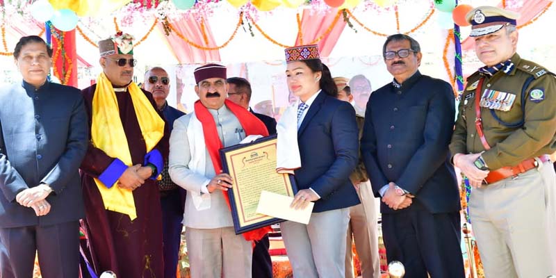 मुख्यमंत्री ने सिरमौर जिले की रानी को खेल गतिविधियों में उनकी विशिष्ट उपलब्धियों के लिए हिमाचल गौरव पुरस्कार प्रदान किया।