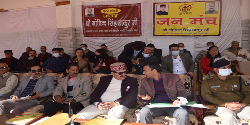 21 नवम्बर। कुल्लू जिले का 24वां जनमंच मनाली विधान सभा क्षेत्र के अंतर्गत राजकीय महाविद्यालय हरिपुर में आयोजित किया गया। जनमंच की अध्यक्षता शिक्षा व कला, भाषा एवं संस्कृति मंत्री गोविंद सिंह ठाकुर ने की। जनमंच में मनाली विधानसभा क्षेत्र की कुल 13 ग्राम पंचायतों के लोगों की समस्याओं की सुनवाई की गई। इन में बुरूआ, चचोगा, गोजरा, हलाण-एक, जगतसुख, करजां, नग्गर, पल्चान, प्रीणी, रूसमू, सरसेई, सोयल तथा वशिष्ट पंचातयों के चुने हुए प्रतिनिधियों सहित सैंकड़ों लोग शामिल हुए जिनकी शिकायतों की सिलसिलेवार सुनवाई की गई। मौके पर लोगों अपनी समस्याओं का समाधान पाकर खुश हुए और मंत्री की प्रशंसा में खड़े होकर कई बार तालियो से अभिवादन करते नजर आएं। इससे पूर्व शिक्षा मंत्री ने विभिन्न विभागों द्वारा योजनाओं और कार्यक्रमों पर लगाई गई प्रदर्शनियों का अवलोकन किया। मंत्री ने देवदार के पौधों का रोपण भी कॉलेज परिसर में किया।जनमंच में कुल 57 शिकायतें प्राप्त हुई, जिनमें से 50 का मौके पर निपटारा किया गया जबकि शेष सात को संबंधित विभागों को तुरंत समाधान हेतु अग्रेषित किया गया। अधिकांश शिकायतें जल शक्ति, लोक निर्माण व बिजली विभागों से संबंधित थी। आयुर्वेद विभाग द्वारा 201 लोगों का स्वास्थ्य परीक्षण किया गया और निःशुल्क दवाईयां भी वितरित की। प्री-जनमंच में 60 से अधिक शिकायतों का समाधान मौके पर किया गया। जनमंच में आज 209 इंतकाल किये गए। विभिन्न 62 प्रमाण पत्र राजस्व विभाग द्वारा जारी किए गए। एचआरटीसी ने 20 ग्रीन कार्ड जारी किए। 12 लोगों को वैकसीन की दूसरी डोज जनमंच में स्थापित कांउटर में प्रदान की गई।