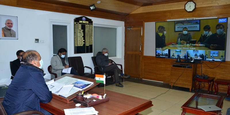 मुख्यमंत्री जय राम ठाकुर ने आज यहां वर्चुअल माध्यम से राज्य में कोविड-19 महामारी की स्थिति की समीक्षा करने के लिए उपायुक्तों, पुलिस अधीक्षकों और मुख्य चिकित्सा अधिकारियों के साथ बैठक की अध्यक्षता करते हुए अधिकारियों को कोविड-19 जांच बढ़ाने, समूहों में प्रभावी निगरानी सुनिश्चित करने और महामारी की तीसरी लहर के प्रसार को रोकने के निर्देश दिए।