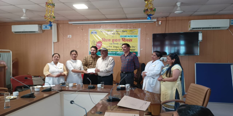 इस अवसर पर डॉ0 दिनेश ठाकुर ने बताया कि ह्रदय हमारा बहुत महत्वपूर्ण अंग है इसलिए इसको स्वस्थ रखना हमारा परम दायित्व है । उन्होंने बताया कि ह्रदय रोग के प्रमुख कारण उच्च रक्त चाप, उच्च शुगर लेवल, उच्च कोलोस्त्रोल लेवल, धुम्रपान, आत्याधिक शराव का सेवन, परिवार में ह्रदय रोग का इतिहास, ज्यादा तली हुई चिकनाई युक्त चीजें खाना, अधिक नमक और मोटापा है।