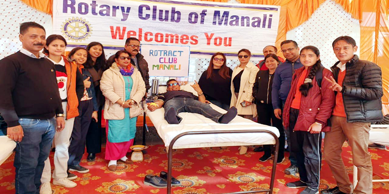 रोटरी क्लब मनाली व ब्लड बैंक कुल्लू के तत्वधान में मनाली के माल रोड पर रक्तदान शिविर का आयोजन किया गया। रोटरी क्लब मनाली के अध्यक्ष शमशेर सिंह ने अपने जीवन का 67 वां सफल रक्तदान कर शिविर का आगाज़ किया । रक्तदान शिविर का आयोजन मनाली के होटल कुंजम के सामने माल रोड पर किया गया । इस रक्तदान शिविर में मनाली की माया ने अपने जीवन का दसवां रक्तदान किया। वहीं सुमित ठाकुर ने भी दसवीं बार रक्तदान कर अपनी भागीदारी सुनिश्चित की। रक्तदान शिविर में बाहरी राज्यों से घूमने आए पर्यटकों ने भी बढ़ चढ़कर हिस्सा लिया । रक्तदान शिविर में 90 लोगों ने रक्तदान कर शिविर को सफल बनाया। रक्तदान शिविर के दौरान रोट्रेक्ट क्लब मनाली व री इमेजिन ज़िन्दगी संस्था के वॉलेंटियर ने अपनी सेवाएं दी ।