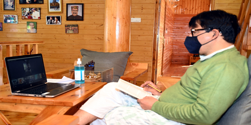 02 नवम्बर। शिक्षा व कला, भाषा एवं संस्कृति मंत्री गोविंद सिंह ठाकुर ने मनाली से निदेशक और समस्त उप निदेशक शिक्षा (उच्च) के साथ कोविड -19 की चुनौतियों के बीच स्कूल और काॅलेजों में बच्चों की सुरक्षा सुनिश्चित करने के लिए राज्य में स्कूल व काॅलेजों को फिर से खोलने पर उच्च शिक्षा विभाग की तैयारियों की वीडियो कान्फ्रेन्सिग के माध्यम से समीक्षा की। वीडयो कान्फ्रेन्सिंग में सभी जिलों के शिक्षा उपनिदेशक व अन्य शिक्षक जुडे़।