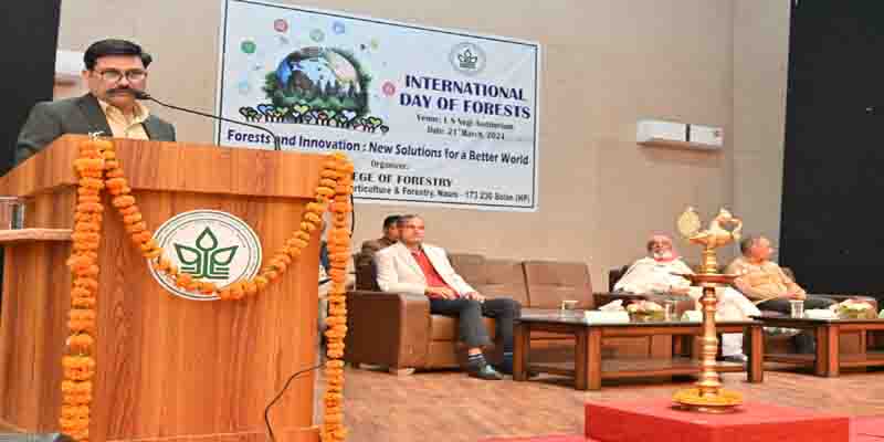 इससे पहले डीन कॉलेज ऑफ फॉरेस्ट्री डॉ. सीएल ठाकुर ने अतिथियों का स्वागत किया और विश्व वानिकी दिवस मनाने के पीछे के उद्देश्यों को रेखांकित किया। उन्होंने कहा कि इस वर्ष की थीम ‘वन और नवाचार: बेहतर दुनिया के लिए नए समाधान’ है। डॉ. ठाकुर ने बताया कि हर साल 10 मिलियन हेक्टेयर से अधिक जंगल काटे जाते हैं लेकिन इसका केवल एक छोटा प्रतिशत ही वापस उगाया जा रहा है। अनुसंधान निदेशक डॉ. संजीव चौहान ने वनों के वर्तमान महत्व के बारे में जानकारी प्रदान की और बताया कि वे सतत विकास सुनिश्चित करने के जंगल क्यों महत्वपूर्ण हैं। रिमोट सेंसिंग, आर्टिफिशियल इंटेलिजेंस, वन जैव प्रौद्योगिकी जैसी आधुनिक प्रौद्योगिकियों को शामिल करने के दायरे और संरक्षण प्रयासों में युवाओं की भूमिका पर भी चर्चा की गई।