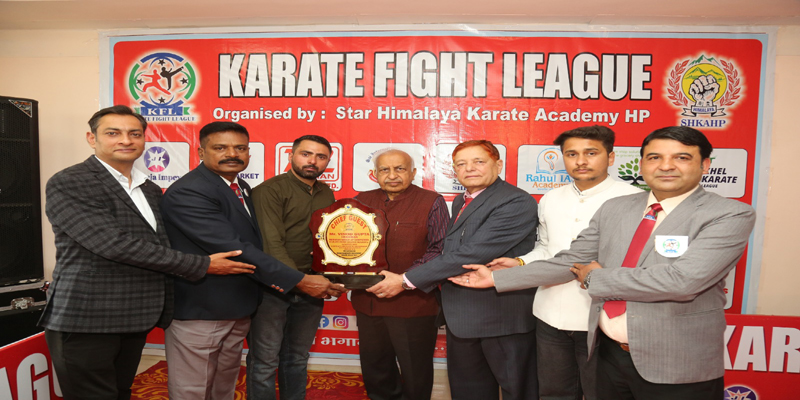 29मई। स्टार कराटे एकेडमी शामती द्वारा कराटे फाइट लीग का आयोजन बहुत ही सफलता पूर्वक भाषा व सांस्कृतिक ऑडिटोरियम कोठों में करवाया गया। जिसका शुभारंभ मेरीडियन ग्रुप ऑफ कंपनीज के चैयरमैन विनोद गुप्ता के और समापन डॉक्टर कर्नल धनी राम शांडिल परिवार कल्याण व स्वास्थ्य मंत्री हिमाचल प्रदेश के कर कमलों द्वारा किया गया । श्री विनोद गुप्ता जी ने अपने संबोधन के माध्यम से सभी खिलाड़ियों को जिंदगी में अनुशासित हो कर आगे बड़ने के लिए प्रेरित किया उन्होंने कहा की अगर अनुशासित हो कर काम किया जाय और नशे से दूर रहा जाए तो जिंदगी में सफल होने से कोई चीज़ रोक नही सकती।स्पेशल गेस्ट के तौर पर शगुन पैलेस के संस्थापक विनोद ठाकुर, स्वर्ण टूरिज्म के संस्थापक गौरव साहनी, जोगिंद्रा बैंक के चैयरमैन मुकेश शर्मा कोठों पंचायत के प्रधान सुनील ठाकुर, शामती पंचायत के उप प्रधान राकेश मेहता और समाजसेवी सक्षु कदशोली मौजूद रहे । एकेडमी के चेयरमैन श्री पी सी कश्यप और कराटे फाइट लीग के फाउंडर सेंसेई रोहित ज़िंटा ने बताया इस कराटे फाइट लीग में 21 राज्यों से 42 के 400 बच्चों ने भाग लिया। जिसकी कुल नगद ईनामी राशी 3 लाख रुपए थी । इसमें 6 वर्ष से लेकर 18 वर्ष तक के बच्चों को 3100 से 15,000 तक के नगद इनाम मेडल और ट्रॉफी प्रदान की गई । कराटे फाइट लीग सीजन 2 में प्रथम स्थान हिमाचल द्वितीय स्थान हरियाणा उत्तरप्रदेश तृतीय स्थान राजस्थान ने हासिल किया ।