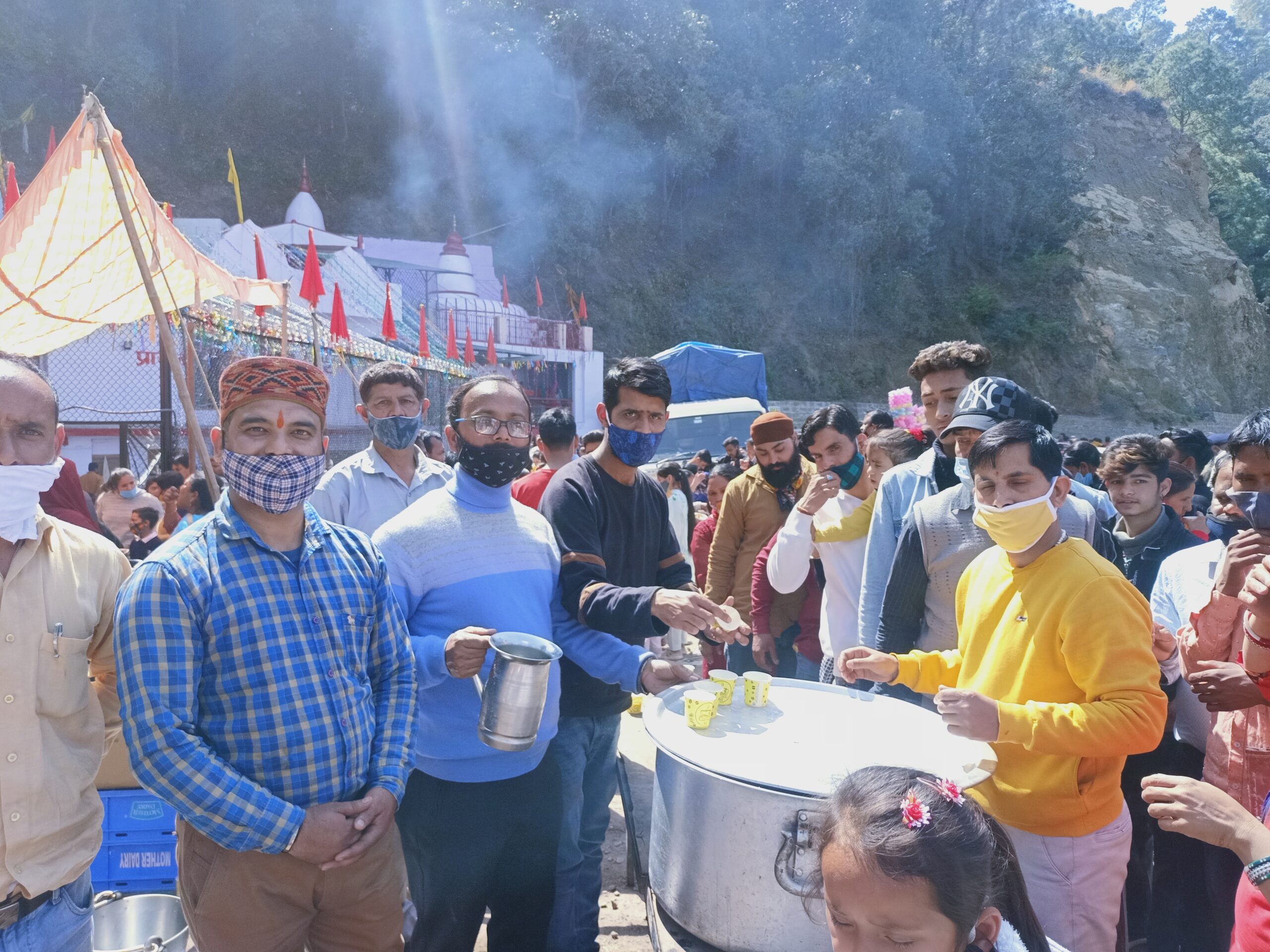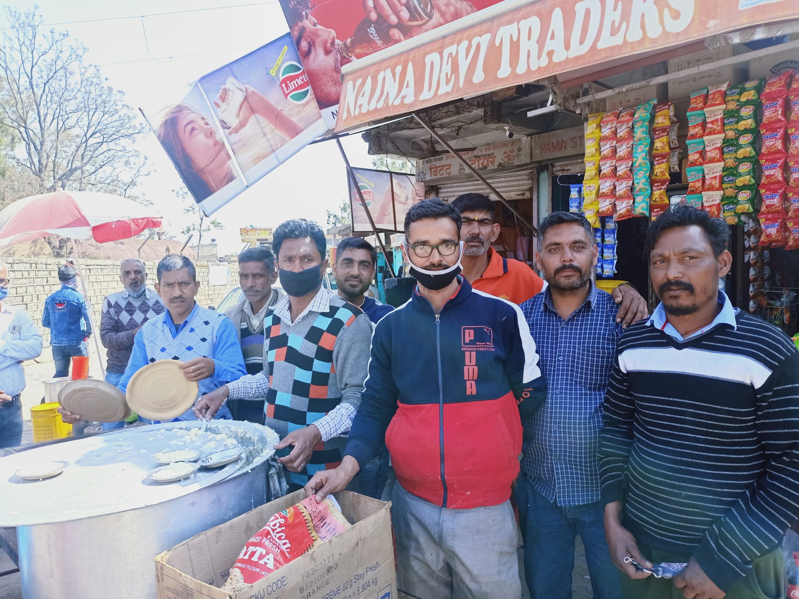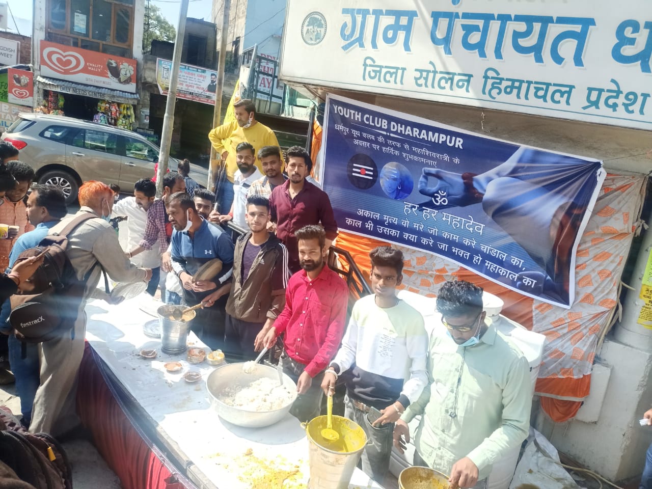 फोटो: भण्डारे का प्रशाद बांटते यूथ क्लब धर्मपुर के युवा।