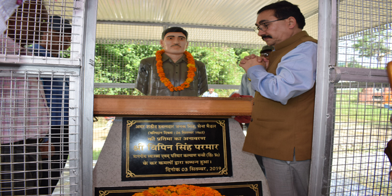 स्वास्थ्य एवं परिवार कल्याण मंत्री विपिन सिंह परमार ने आज सुलह विधानसभा क्षेत्र की ग्राम पंचायत थुरल के नलेहड़ गांव के शहीद हवलदार(सेना मैडल) जनक सिंह की प्रतिमा का अनावरण किया। इस अवसर पर उनके साथ शहीद के परिजन मौजूद थे। जनक सिंह राणा 6 सितंबर 1965 को महज 30 वर्ष की आयु में भारत पाक युद्ध में खेमकरन सेक्टर में शहीद हुए थे। शहीद जनक सिंह चार गरनेडियर में सेवारत थे। शहीद के पिता सन्त राम भी ब्रिटिश सेना में नायब सूबेदार के पद से सेवानिवृत्त हुए थे। शहीद का बेटा कश्मीर सिंह राणा भी कप्तान रैंक से सेवानिवृत्त हुए हैं और इनका बेटा साहिल राणा भी सेना में कार्यरत होकर देश की सेवा कर रहा है।