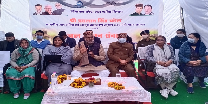 04 मार्च: केन्द्रीय जल शक्ति एवं खाद्य प्रसंस्करण उद्योग राज्य मंत्री प्रहलाद सिंह पटेल ने कहा कि हर गांव के हर घर में स्वच्छ पेयजल पहुंचाना केन्द्र सरकार का लक्ष्य है। इसके लिए तकनीक और जमीनी स्तर पर लोगों से पूरा सहयोग लिया जा रहा है।केन्द्रीय जल शक्ति राज्य मंत्री आज कांगड़ा जिला के नगरोटा बगवां विधान सभा क्ष्ेात्र के पटयालकर तथा धर्मशाला विधान सभा क्षेत्र के जदरांगल गांवो का दौरा करने के दौरान उपस्थित जनसमूह को सम्बोधित करते हुए बोल रहे थे। उन्होंने इस दौरान ग्रामीण क्षेत्रों में घरों में सुरक्षित पेयजल और पर्याप्त भंडार उपलब्ध कराने के उद्देश्य से सरकार द्वारा शुरू किये गये जल जीवन मिशन की परियोजनाओं के बारे में जानकारी सांझा की। उन्होंने कहा कि पानी की गुणवत्ता बरकरार रहे, इसके लिए लोगों को जागरूक किया जा रहा है। हर गांव के तहत पांच महिलाओं को प्रशिक्षित किया जा रहा है, जो पूरे गांव में लोगों को शिक्षित करेंगी। जल की बर्बादी न हो, जल की गुणवत्ता बरकरार रहे, इसके लिए काम किया जा रहा है।केन्द्रीय जल शक्ति राज्य मंत्री ने बताया कि पानी की बर्बादी, लीकेज ना हो इसे दूर करने के लिए पंचायत स्तर पर ही लोगों को प्लंबिंग व फिटिंग ऑपरेटर की ट्रेनिंग दी जा रही है। जिससे रोजगार के साधन भी बन रहे हैं।