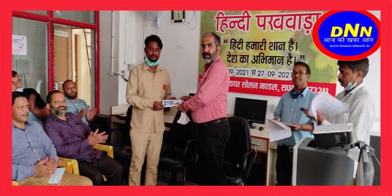 29 सितंबर। डाक मण्डल सोलन द्वारा गत दिवस हिन्दी पखवाड़े के अन्तर्गत आयोजित की गई प्रतियोगिता के विजेताओं को सम्मानित किया गया। यह जानकारी अधीक्षक डाकघर मण्डल सोलन के अधीक्षक रतन चन्द शर्मा ने दी।