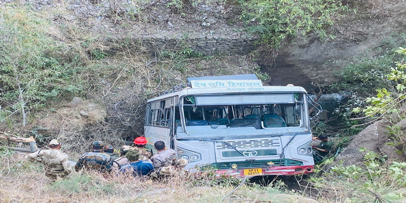 14 फरवरी। जिला शिमला के उपमंडल के रामपुर उपमंडल के पुलिस थाना झाकड़ी के समीप गसो में सोमवार दोपहर करीब सवा दो बजे एक बड़ा बस हादसा होते होते टला। रामपुर से करीब 15 किलोमीटर दूर एनएच 5 पर गसो गांव में मंडी से रिकोंगपिओ जा रही एचआरटीसी की बस अचानक सड़क से करीब डेढ़ सौ मीटर गहरी खाई में लुढ़क गई। इस हादसे में कोई हताहत नहीं हुआ, लेकिन बस में सवार सभी 34 लोगों को चोटें आई हैं। वही तीन गंभीर घायलों को ज्यादा चोटें आई हैं, जिन्हें डॉक्टरों की कड़ी निगरानी में रखा गया है। बाकी सभी घायलों की हालत खतरे से बाहर बताई जा रही है।मंडी से रिकागपिओ जा रही बस नम्बर एचपी-31बी-6556 करीब सवा दो बजे अचानक घसौ के पास सड़क से नीचे खाई में सौ मीटर गिर गई। सूचना मिलते ही झाकड़ी थाना से पुलिस के जवान और स्थानीय लोगों ने राहत और बचाव कार्य शुरू कर सवारियों को खाई से निकाला।जानकारी के अनुसार बस में 34 लोग सवार थे और सभी लोगों को मामूली चोटें आई हैं। चार लोगों को ज्यादा चोट लगने के कारण खनेरी अस्पताल लाया गया है। जहां उनकी हालत स्थिर है और सभी खतरे से बाहर बताए जा रहे हैं। प्रत्यक्षदर्शियों के अनुसार एक बड़ा बस हादसा सोमवार को टल गया है, जिस जगह से बस खाई में गिरी है, वहां पेड़ और घास होने के कारण जान माल का ज्यादा नुकसान नही हुआ। जबकि बस ने चार पलटे भी खाए। पुलिस ने मौके पर पहुंच कर बस हादसे के कारणों की जांच पड़ताल शुरू कर दी है और मामला दर्ज कर दिया गया है।