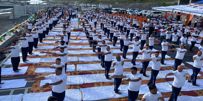 21 जून। अंतरराष्ट्रीय योग दिवस-2022 के उपलक्ष्य में अटल टनल, रोहतांग के नार्थ पोर्टल में आईटीबीपी, एनडीआरएफ व सेना के जवानों सहित नेहरू युवा केन्द्र के वॉलन्टियर्ज, आयुष विभाग, आर्ट ऑफ लिविंग तथा अन्य संस्थाओं के लगभग 500 लोगों ने योग करके दिवस के महत्व का समाज को संदेश दिया। इस मौके पर केन्द्रीय खेल व युवा मामले तथा गृह राज्य मंत्री निसिथ प्रामाणिक बतौर मुख्य अतिथि मौजूद रहे जबकि तकनीकी शिक्षा व जनजातीय विकास मंत्री डा. रामलाल मार्कंण्डा, शिक्षा मंत्री गोविन्द सिंह ठाकुर बतौर विशेष अतिथि के रूप में मौजूद रहे। 10 हजार फुट से अधिक ऊंचाई पर अत्याधुनिक अटल टनल, रोहतांग के उत्तरी छोर पर जो कबाईली जिला लाहौल-स्पिति में पड़ता है, में माईनस एक से तीन डिग्री में योग क्रियाएं करना अपने आप में एक अलग सी अनुभूति है।