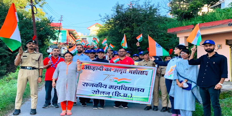 राजकीय महाविद्यालय सोलन के छात्र-छात्राओं ने आजादी के अमृत महोत्सव के अंतर्गत निकाली प्रभातफेरी