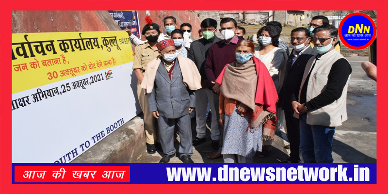 25 अक्तूबर। जिला निर्वाचन अधिकारी एवं उपायुक्त आशुतोष गर्ग ने सुव्यवस्थित मतदाता शिक्षा एवं निर्वाचक सहभागिता कार्यक्रम (स्वीप) के अंतर्गत ऐतिहासिक ढालपुर मैदान से हस्ताक्षर अभियान की शुरूआत की। उपायुक्त ने फर्स्ट टाईम वोटर कैडेट सविति के साथ हस्ताक्षर करके जिला के लिऐ अभियान की शुरूआत की। कार्यक्रम का आयोजन स्वीप के जिला नोडल अधिकारी एवं अतिरिक्त उपायुक्त शिवम प्रताप सिंह की देखरेख में नेहरू युवा केन्द्र द्वारा किया गया।