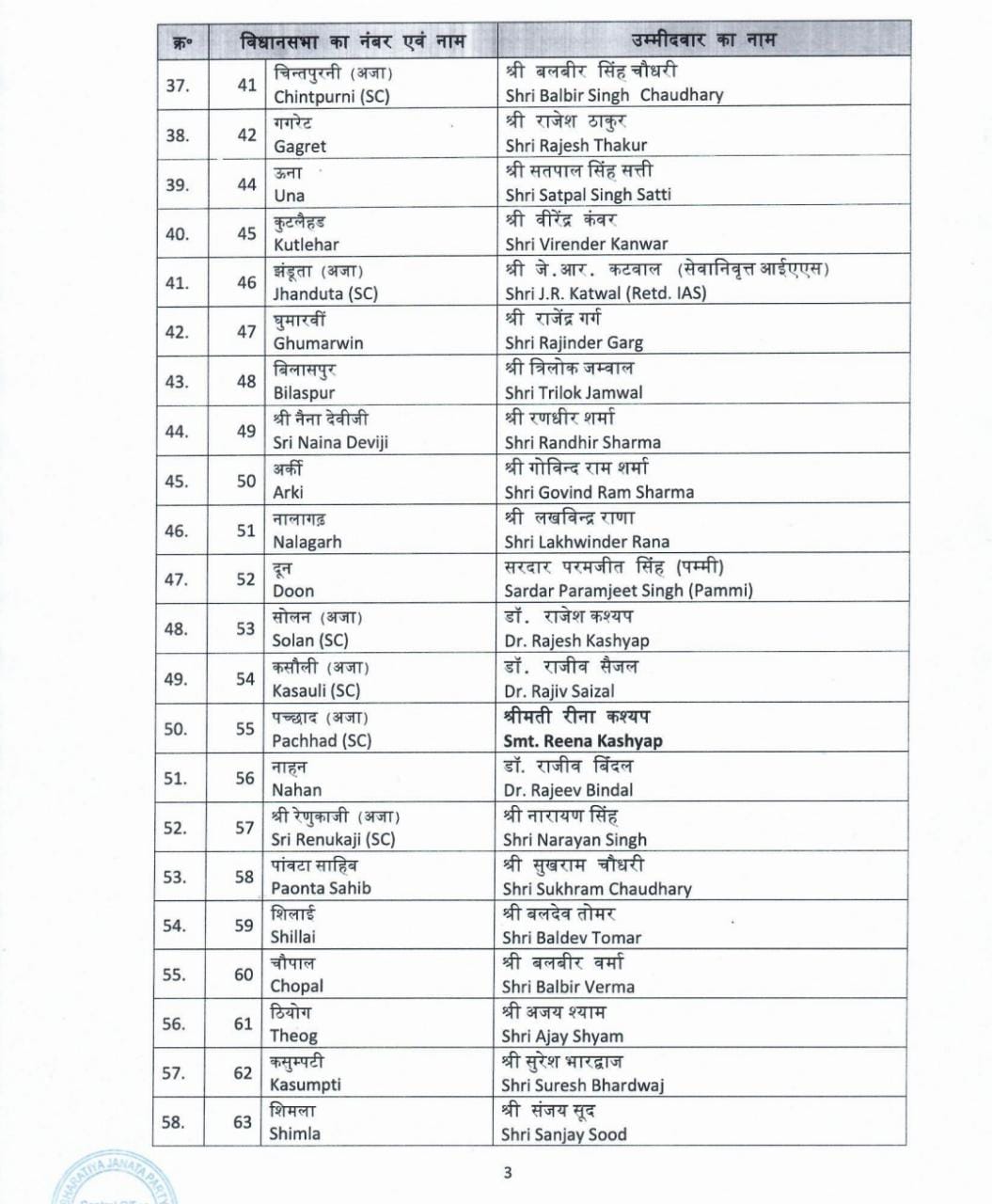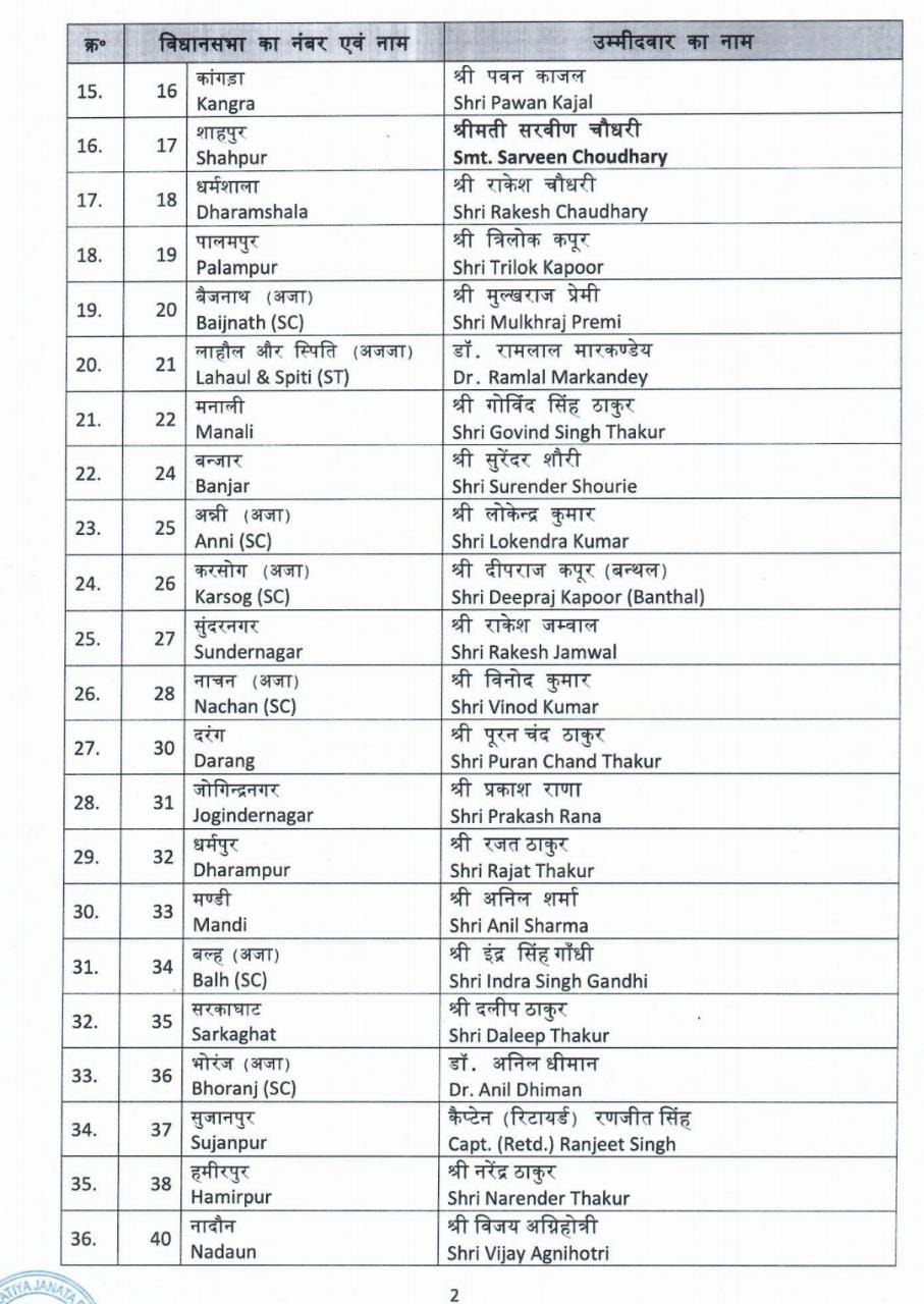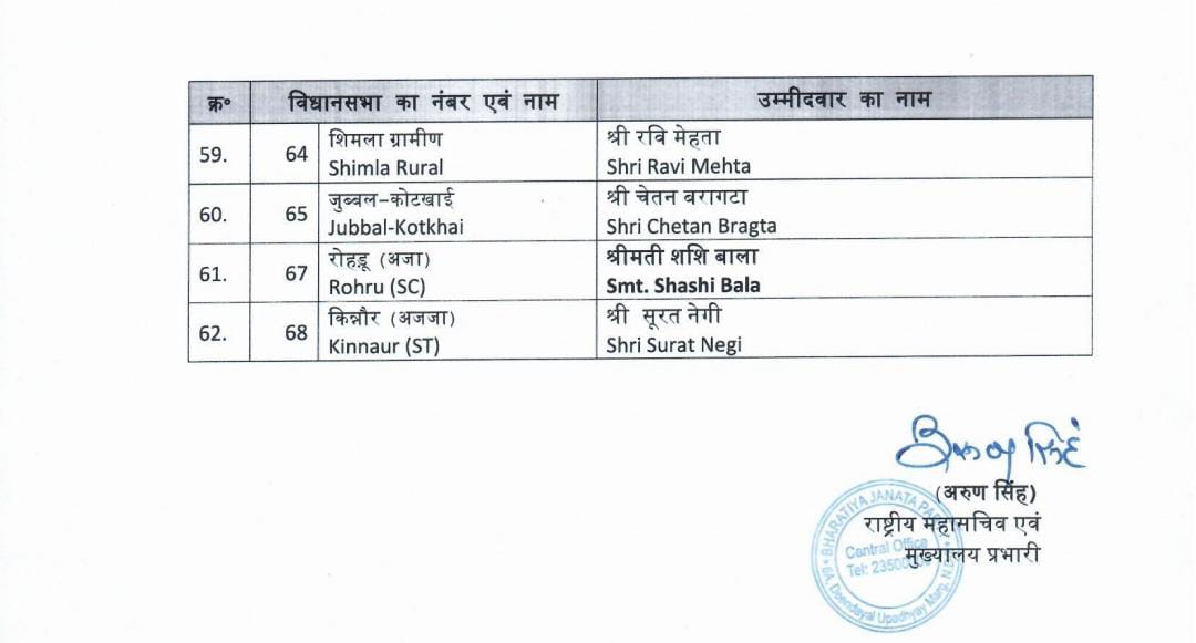 विधानसभा चुनाव के लिए भारतीय जनता पार्टी ने अपने प्रत्याशियों की सूची जारी कर दी है। बुधवार सुबह यह सूची जारी की गई।