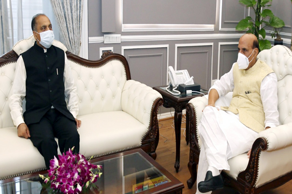 इसके अलावा मुख्यमंत्री जय राम ठाकुर ने आज नई दिल्ली में केन्द्रीय रक्षा मंत्री राजनाथ सिंह से भेंट की। इस अवसर पर उन्होंने रक्षा मंत्री के साथ राज्य में कार्यान्वित की जा रही विभिन्न विकासात्मक परियोजनाओं के बारे में चर्चा की। जय राम ठाकुर ने उन्हें राज्य में कोविड-19 महामारी से निपटने के लिए प्रदेश सरकार द्वारा उठाए जा रहे कदमों के बारे में अवगत कराया और सहयोग के लिए केन्द्र सरकार आभार व्यक्त किया। मुख्यमंत्री ने रक्षा मंत्री को भारत-तिब्बत सीमा पर अपने दौरे के बारे में भी अवगत कराया। बैठक में मुख्यमंत्री के अतिरिक्त मुख्य सचिव जे.सी. शर्मा और उप-आवासीय आयुक्त पंकज शर्मा भी शामिल हुए।