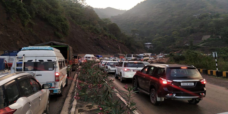 KALKA -SHIMAL NH पर डेढ घंटे लगा रहा जाम