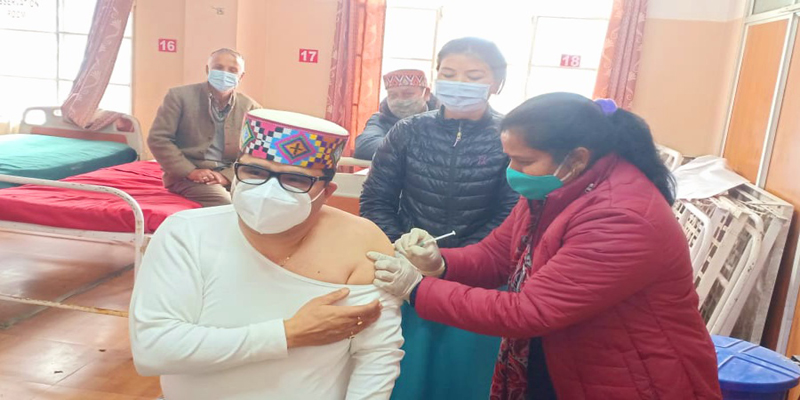 12 मार्च। शिक्षा व कला, भाषा एवं संस्कृति मंत्री गोविंद सिंह ठाकुर ने सामुदायिक स्वास्थ्य केन्द्र मनाली में कोविड-19 वैक्सीन का पहला टीका लगवाया। एसओपी के अनुरूप उन्हें कोरोना वैक्सीन की दूसरी डोज 28 दिनों बाद दी जाएगी।