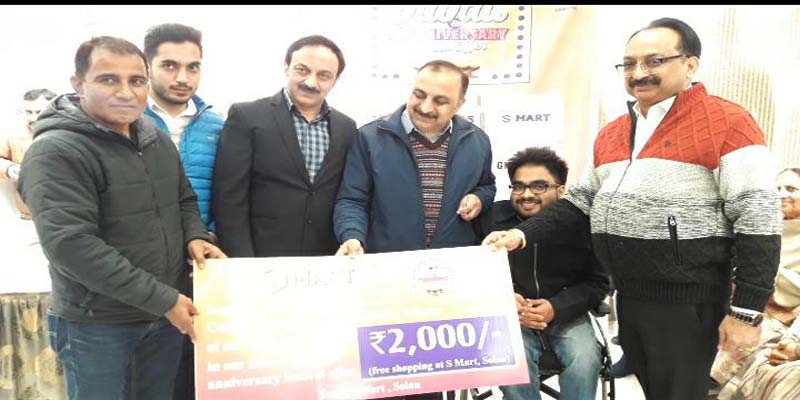 सोलन के राजगढ़ रोड़ स्थित एसमार्ट में खरीददारी करने वाले लोगों को बुधवार को इनाम बांट गए। देवभूमि ग्रुप के एसमार्ट शॉपिंग कॉम्पलेक्स द्वारा बुधवार को ग्राहकों के लिए क्रिसमस के उपलक्ष्य पर विशेष कार्यक्रम का आयोजन किया गया। इस दौरान देवभूमि ग्रुप के सीएमडी पवन साहनी, निदेशक गिरीश साहनी, आधार फूड्स के सीएमडी दीपक साहनी, एसमार्ट के सीएमडी मनोज सहानी ने बतौर मुख्यातिथि शिरकत की। कार्यक्रम का मंच संचालन चंद्र भानू द्वारा किया गया।