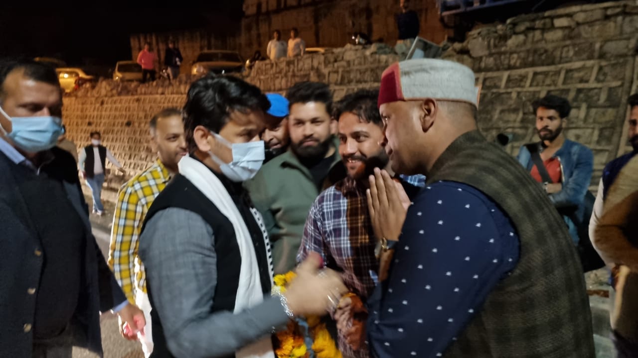 06 मार्च। केंद्रीय वित्त और कॉरपोरेट मामले के राज्य मंत्री अनुराग ठाकुर देर रात हिमाचल प्रदेश के प्रवेश द्वार परवाणू पहुंचे। यहां पहुंचने पर भारतीय जनता पार्टी कसौली मंडल ने जोरदार स्वागत किया। इस दौरान महिला आयोग की अध्यक्ष डा. डेजी ठाकुर, जिला परिषद सदस्य दर्पना ठाकुर सहित भाजपा युवा मोर्चा के उपाध्यक्ष दिशु शर्मा, पंचायत समिति सदस्य टकसाल सुनील ठाकुर, नरेश अत्रि, आईटी सेल से चंदन शर्मा, कोटी-नाभ पंचायत से उपप्रधान लक्ष्मी दत्त अत्रि व अन्य लोगों ने फूलमाला पहना कर स्वागत किया।