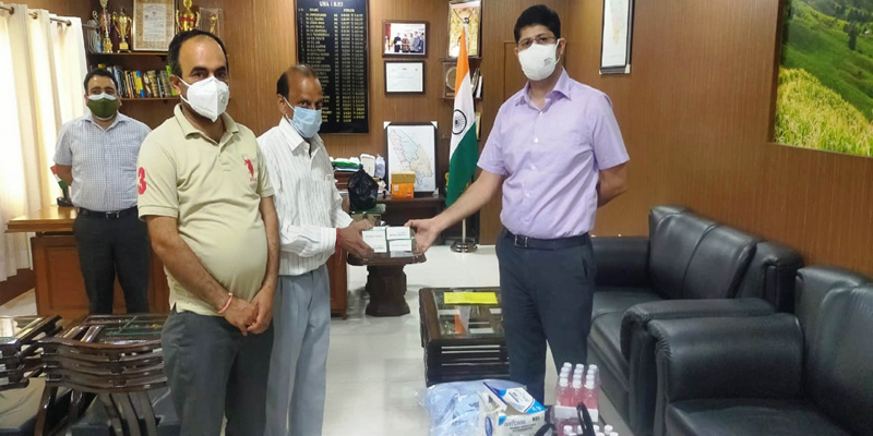 18 मई। चौधरी मेडिकल हॉल पंजावर की ओर से उपायुक्त राघव शर्मा को आवश्यक उपकरण भेंट किए गए। मेडिकल हॉल की ओर से 20 ऑक्सीमीटर, 450 मास्क तथा 50 बोतल सेनिटाइजर दी गई, जिसके लिए जिलाधीश ऊना राघव शर्मा ने आभार व्यक्त किया।